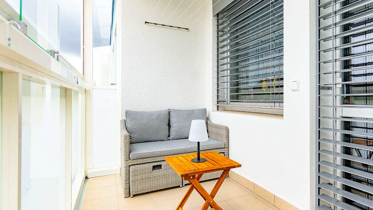 Obyvatelé mohou volit z množství podlahových krytin, výplní zábradlí a zábradlí samotného. K závěsným balkonům dodáváme praktické příslušenství jako například sušáky na prádlo.
